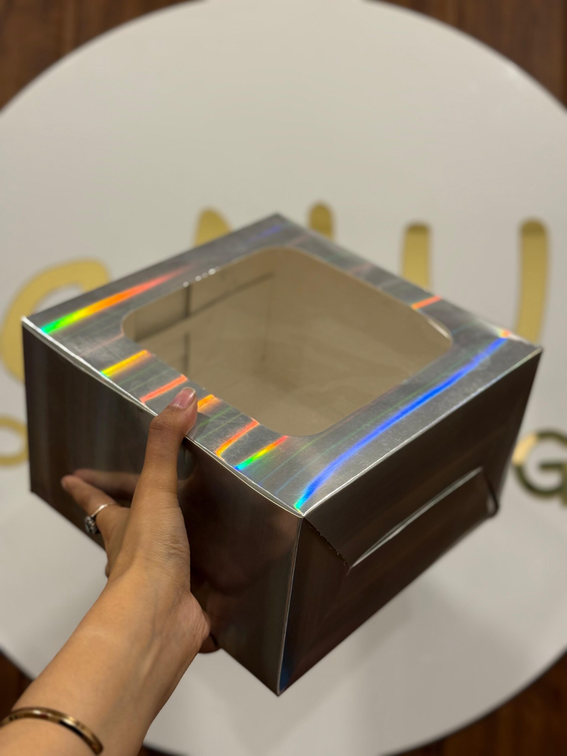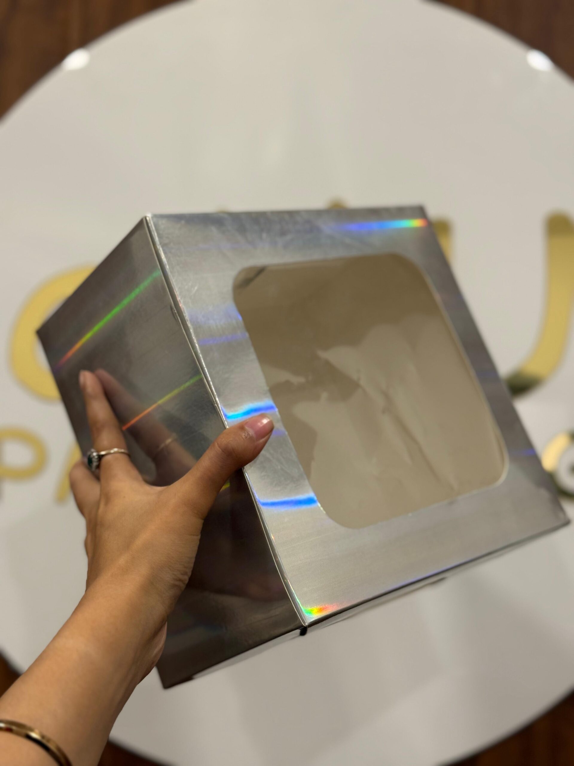 WINDOW CAKE BOX – SILVER (8/8/5″)